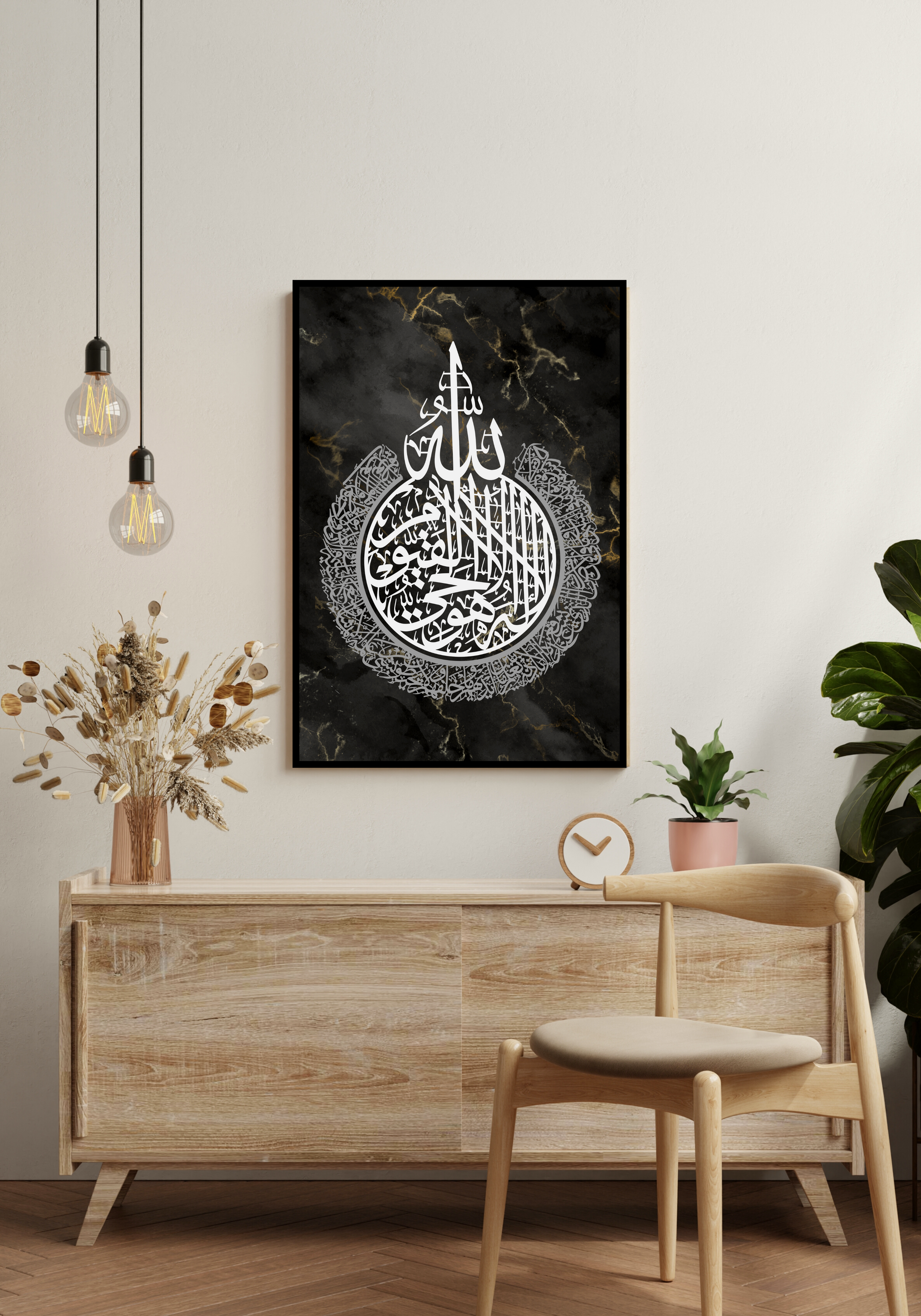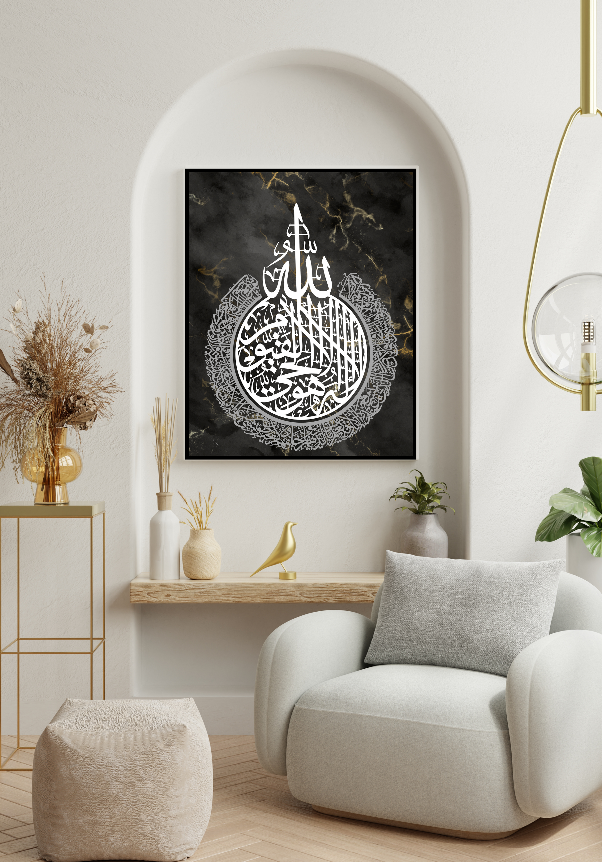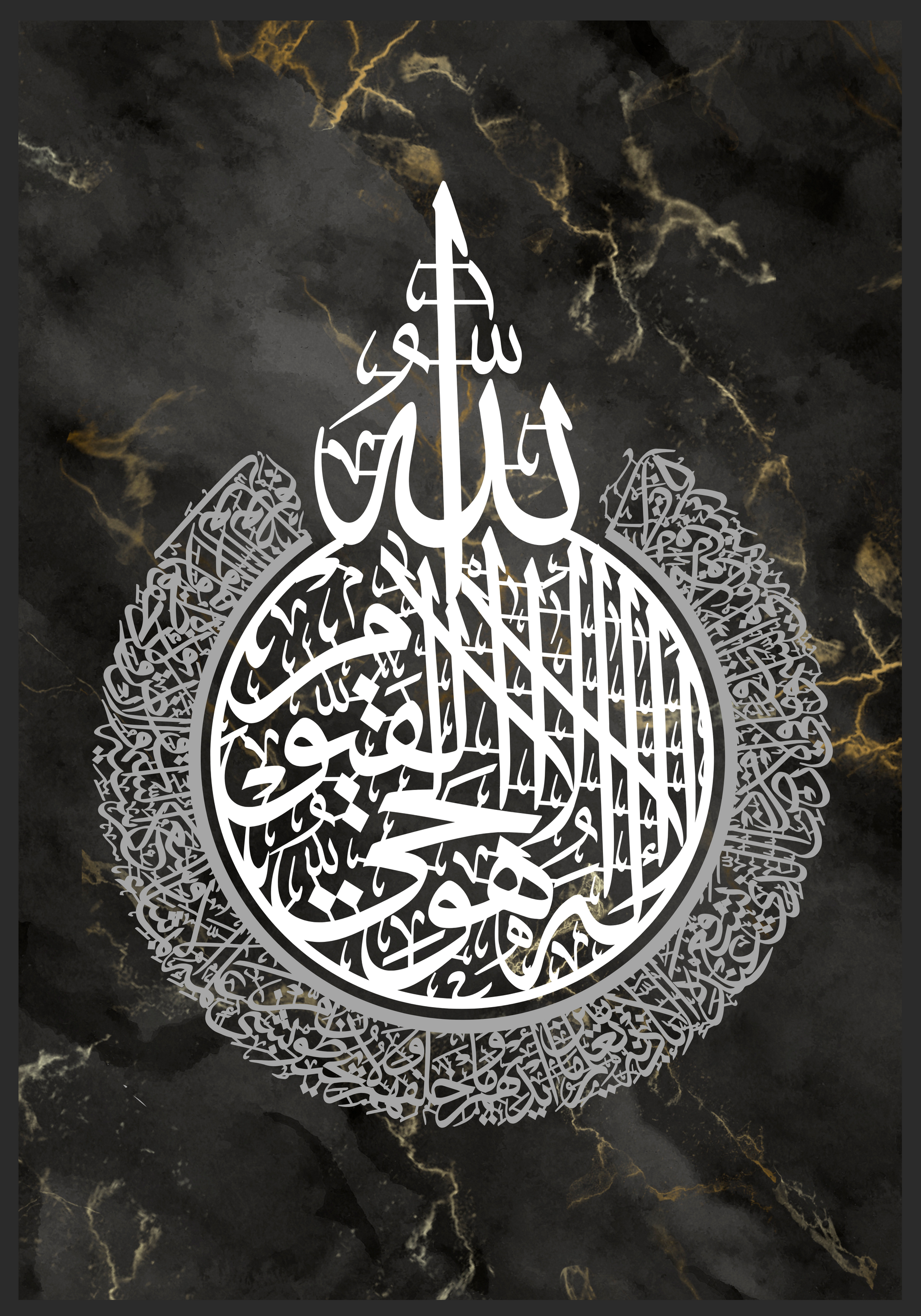Ayatul Kursi Islamic Wall Art ā Marble & Calligraphy Design (Unframed / Framed)